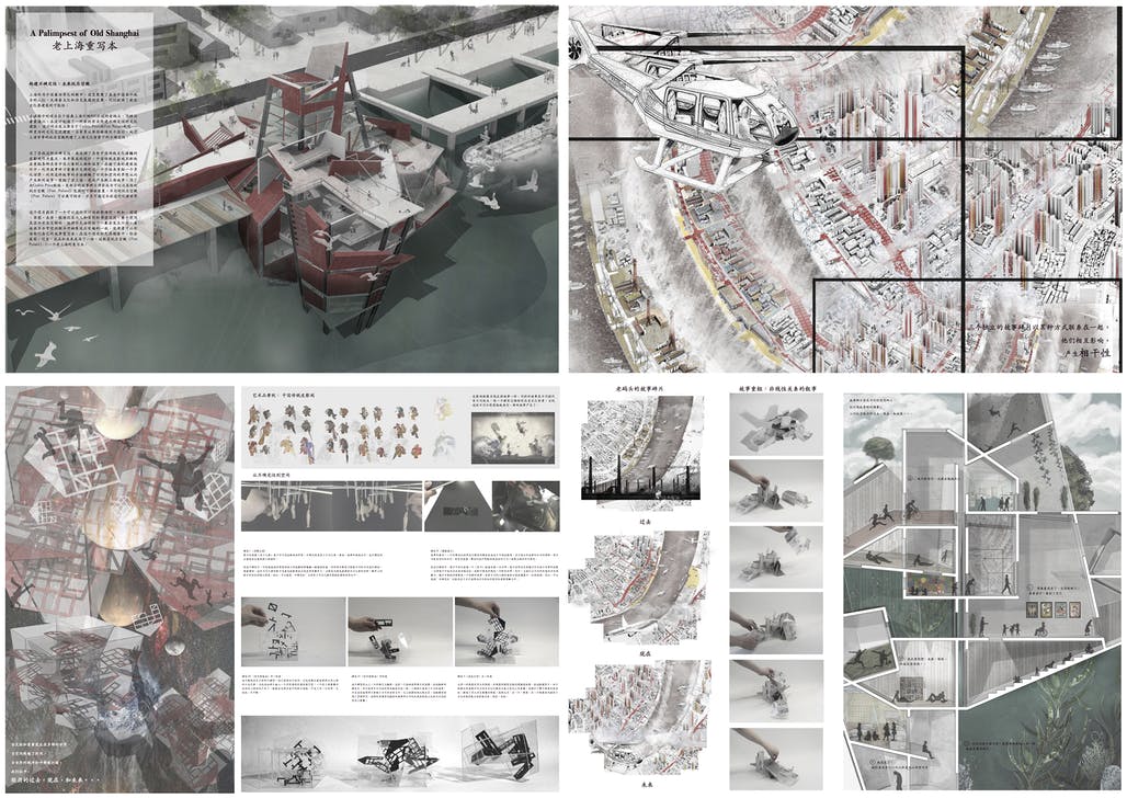 Two related Final Year Studio projects developed by the 2017 graduates Shaokang Li and Fuwei Shao each received an Outstanding Coursework award. Shaokang Li’s Final Year Project, ‘A Palimpsest of Old Shanghai’, captured an understanding of indeterminacy by translating a Chinese shadow play into an exquisite series of conceptual models and drawings, and subsequently into architecture. Story fragments overlap and interlace in the multi-universe of the proposed architecture. It blurs the boundary between time and space and generates new stories. Graduate Fuwei Shao questioned compositional approaches to the design of architecture with a focus on function, form and material to determine the meaning of space. His Final Year Project ‘Shifting Perspectives in the Urban Theatre’ sensibly addresses issues of control and participation in architectural design, arriving at new ways to activate and promote social interaction.